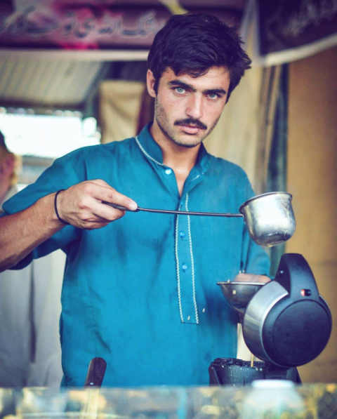 Su nombre es Arshad Khan y este domingo recién pasado llevaba tres meses trabajando en un modesto puesto de té en Islamabad, Pakistán, cuando su belleza llamó la atención de la fotógrafa Jiah Ali, quien le hizo una fotografía con su cámara y posteriormente la compartió en Instagram.