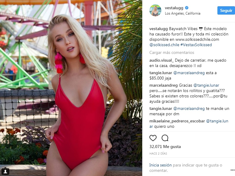 Vesta Lugg es toda una celebridad en redes sociales y así lo demuestran sus más de 800 mil seguidores que siguen todos los pasos de la guapa rubia.