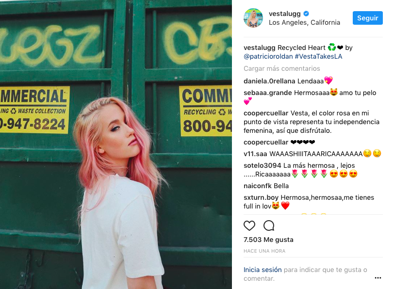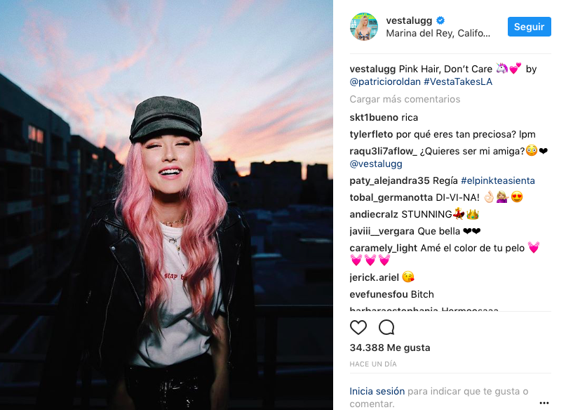 ¡Adiós a su rubio platinado y hola a un nuevo color de pelo! Así sorprendió a sus fanáticos, la cantante y actriz Vesta Lugg a través de sus redes sociales, tras publicar las fotos de su más reciente cambio de look.