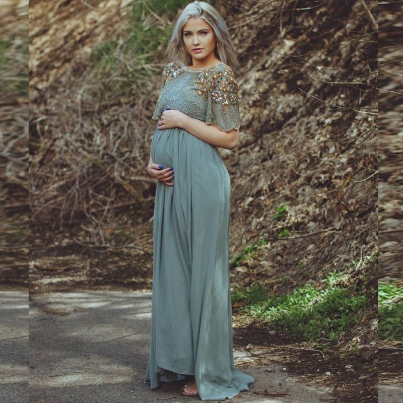 - La gasa como tejido vaporoso, cómodo y fresco es la gran estrella en cuanto a vestidos de fiesta para embarazadas primavera-verano, mientras que el raso o terciopelo es el ideal para diseños de otoño-invierno.