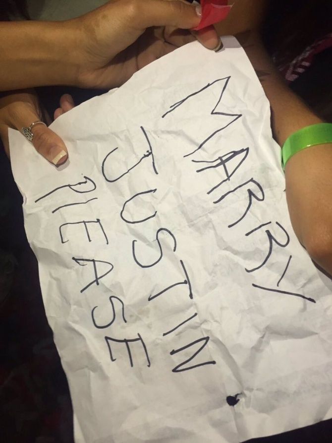 En medio del público presente en su concierto, se encontraba una joven que tenía un trozo papel con la frase "¡Por favor cásate con Justin!", esto hizo enojar a Selena y en cuanto vio esta petición, pidió a las personas que estaban cerca de ella que le entregaran el cartel, para posteriormente arrugarlo y tirarlo al suelo.