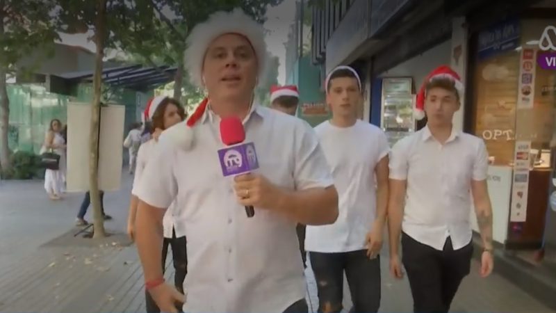 El animador caminó por las calles de Providencia, donde se fotografió con los transeúntes e incluso cantó villancicos. No obstante, Viñuela también vivió un incómodo momento. Esto debido a que en pleno despacho un hombre intentó agredirlo.