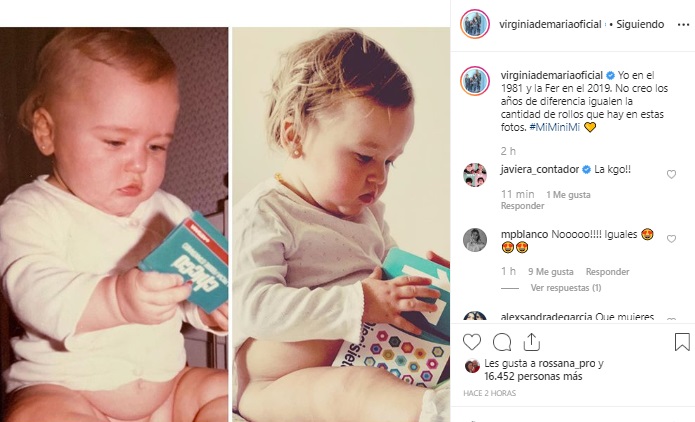 'Yo en el 1981 y la Fer en el 2019. No creo los años de diferencia igualen la cantidad de rollos que hay en estas fotos. #MiMiniMi', escribió Virginia de María para acompañar la postal que subió a su cuenta en Instagram.