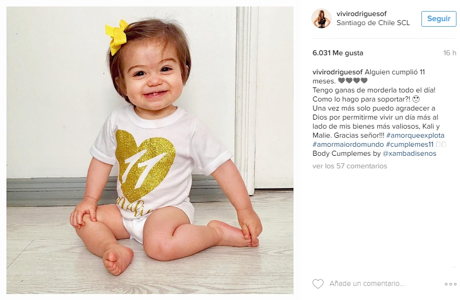 "Alguien cumplió 11 meses. Tengo ganas de morderla todo el día! Como lo hago para soportar?! Una vez más solo puedo agradecer a Dios por permitirme vivir un día más al lado de mis bienes más valiosos, Kali y Malie. Gracias señor!!!", escribió junto a la imagen.