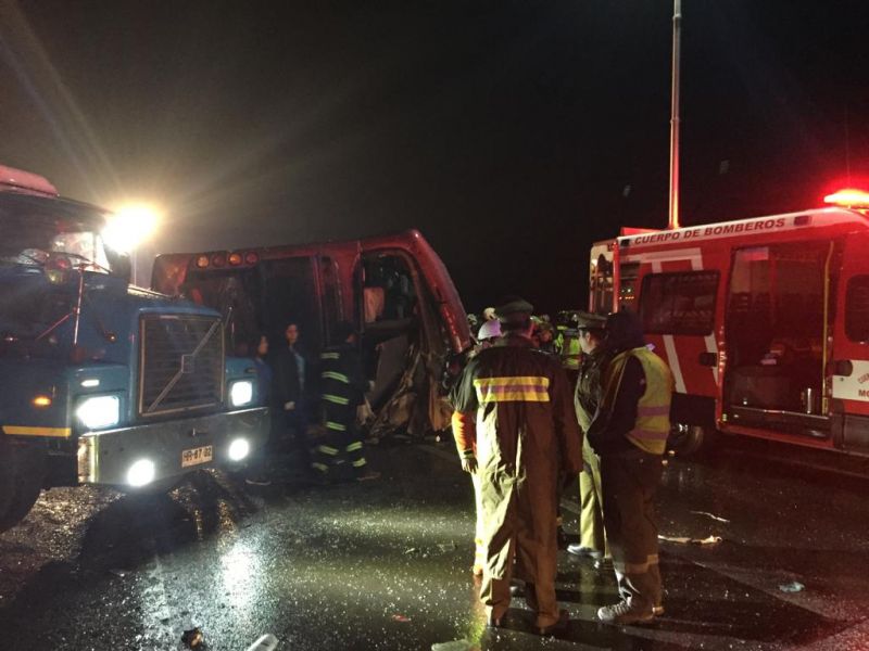 Seis personas fallecieron y 40 resultaron heridas, producto de un grave accidente que se registró esta madrugada, en el kilómetro 60 de la Ruta 5 Sur, en la comuna de San Francisco de Mostazal.