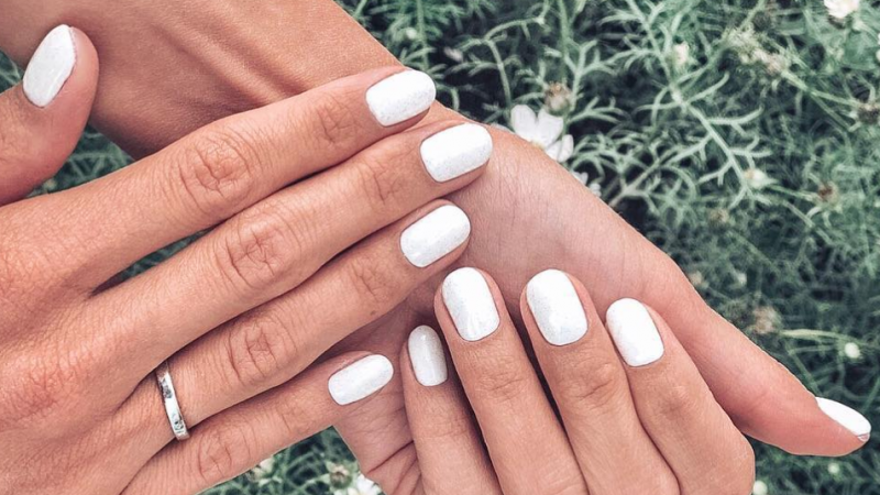 También puedes usar un blanco nacarado, escarchado o incorporar glitter a tu manicure.