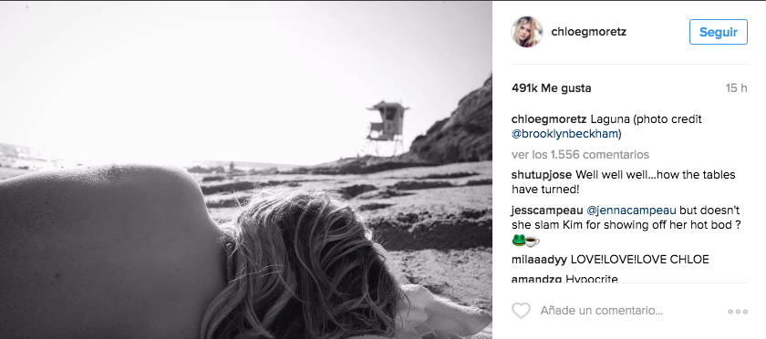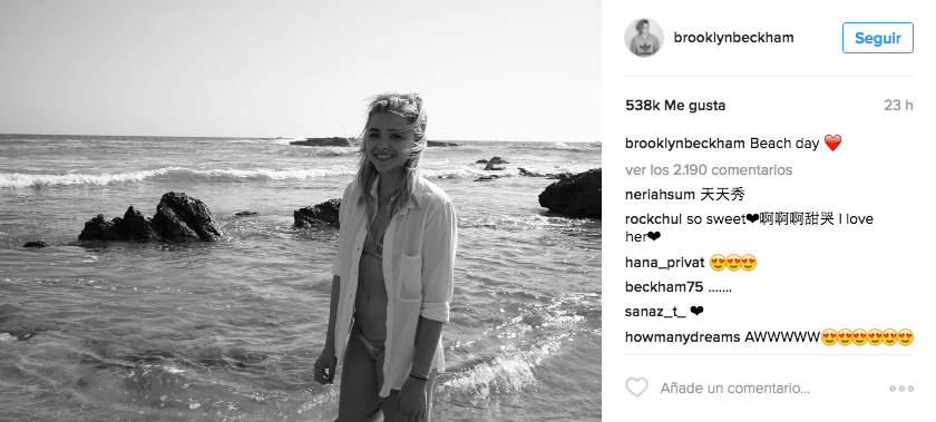 Antes de esa publicación, el hijo de David y Victoria Beckham subió esta otra imagen a su cuenta en Instagram, aunque aquí la actriz luce espléndida con su bikini y una camisa.