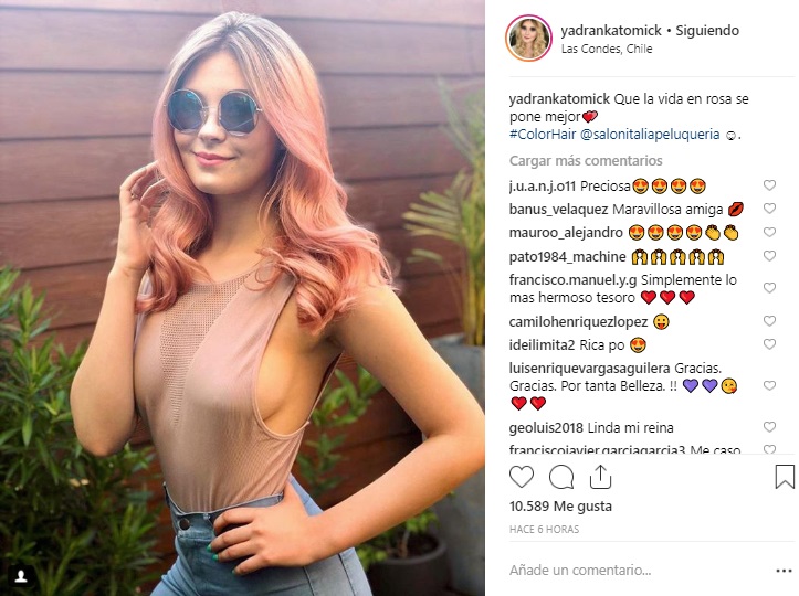 Hace poco fue Kika Silva y ahora es la chilena-croata Yadranka Tomic quien se atrevió a tinturar su cabello de color rosado.