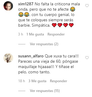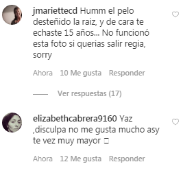 Algunos usuarios le dejaron desubicados comentarios donde la criticaban por 'verse mucho más mayor'. Tras esto, varios usuarios apoyaron a Vásquez y criticaron la 'mala onda' de algunos.
