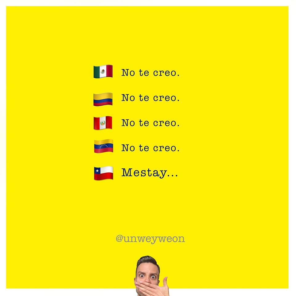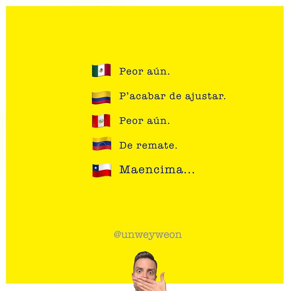 Por lo mismo, un youtuber mexicano se rió de la situación creando unas divertidas gráficas donde enseña a los turistas los modismos típicos de Chile, comparándolos con las maneras de decirlos en Latinoamérica. Se trata de Alejandro Velasco, conocido en Internet como Un wey weón, quien mostró qué significan "liz taylor", "lucas", "palta", entre otros.