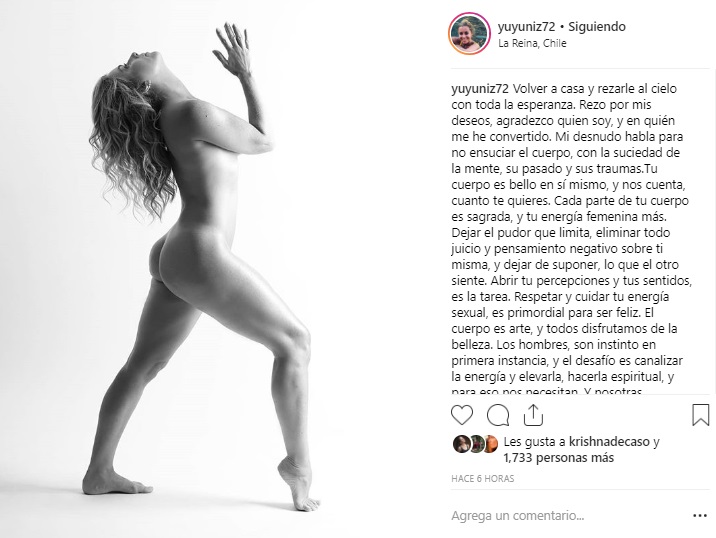 Yuyuniz Navas, quien actualmente se desempeña como instructora de Yoga y terapeuta, publicó una desnudo en su cuenta de Instagram, acompañado de un inspirador mensaje.