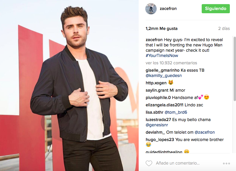 A través de las redes sociales subió una foto que causó furor en Internet. “Hola chicos! Me entusiasma contaros que estaré al frente de la nueva campaña Hugo Man del próximo año”, indicó en Instagram.