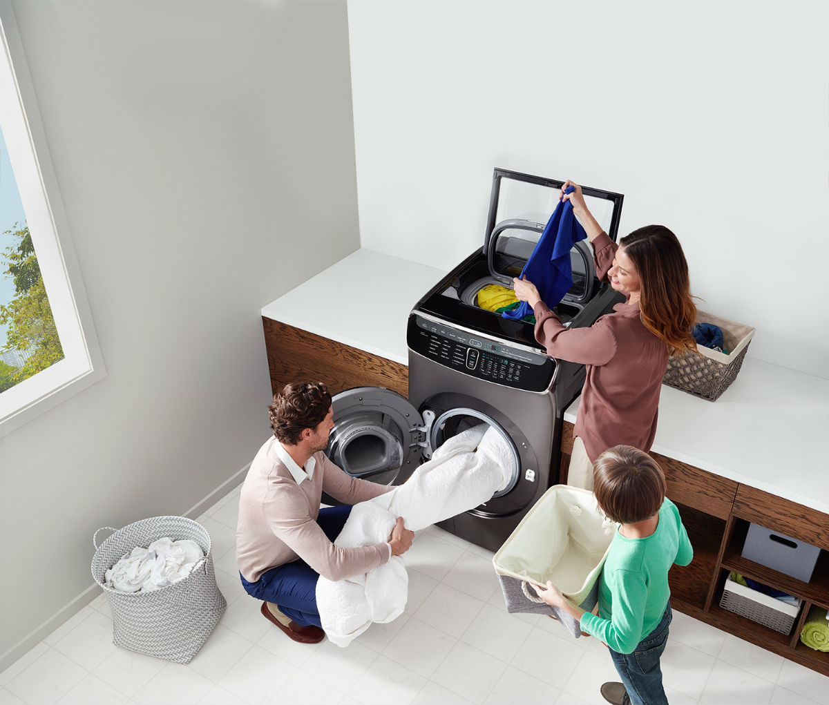 Los expertos en lavado recomiendan separar las prendas según el tipo de tela debido a las distintas temperaturas de lavado que estas requieren. La nueva lavadora/secadora Flex Wash de Samsung cuenta con una capacidad de 22 kilos de carga frontal y 3,5 en la superior, lo que permite segmentar por tipo de tela de las prendas entre ambas cargas.