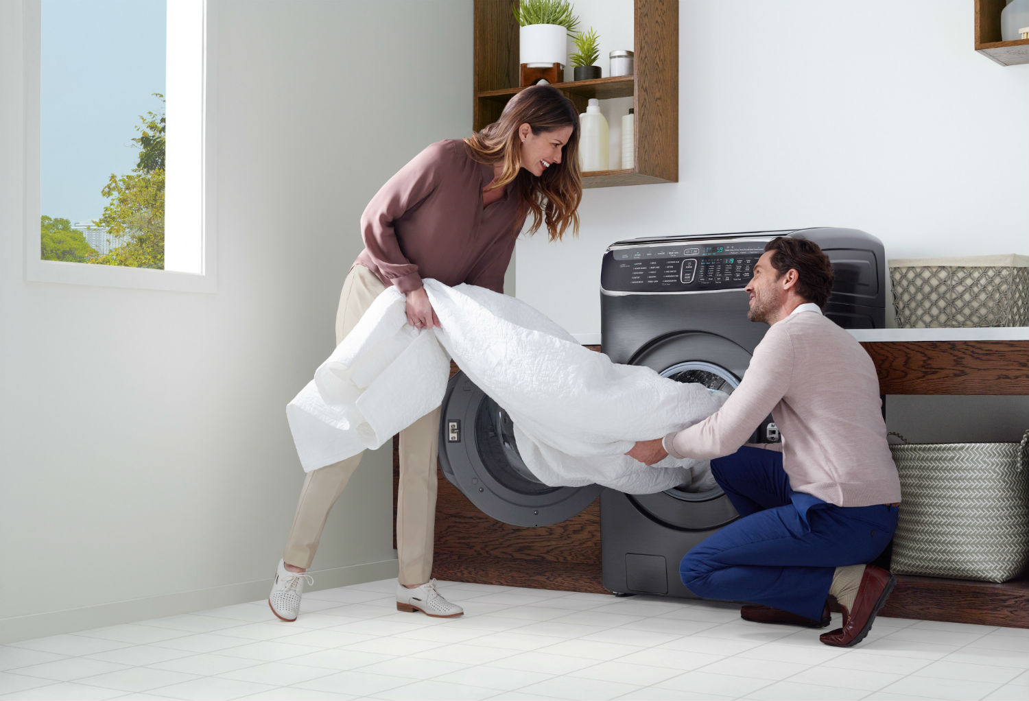Cada día las marcas se preocupan de lanzar al mercado productos que se adapten a las necesidades de las personas, y no al revés. Es justamente basándose en este concepto que Samsung presentó la nueva FlexWash, que en el espacio de una lavadora común ofrece una Add Wash con hasta 22 kg. de lavado y 13 kg de secado, y otra lavadora superior de hasta 3,5 kg. Esta distribución de cargas permite hacer mucho más flexible el lavado, ya que puedes añadir sin problemas ropa a color, blanca, de cama o delicada, en un mismo ciclo, sin tener que realizar dos cargas de ropa como en una lavadora común, ahorrando tiempo y energía.