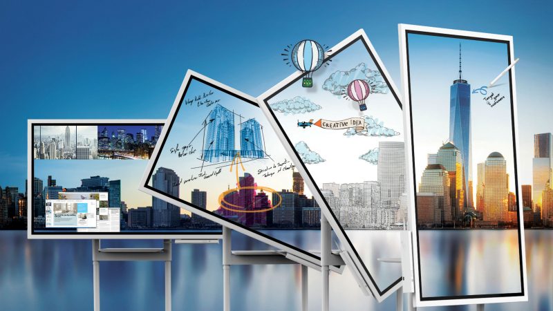Otra forma de interactuar con este papelógrafo digital es conectando otros dispositivos. La función integrada de compartir pantalla permite a los usuarios  transmitir contenido desde sus dispositivos personales a la pantalla (PCs, tablets, dispositivos móviles), introduciendo ideas frescas a la discusión sin interrupción o reducción de calidad visual.