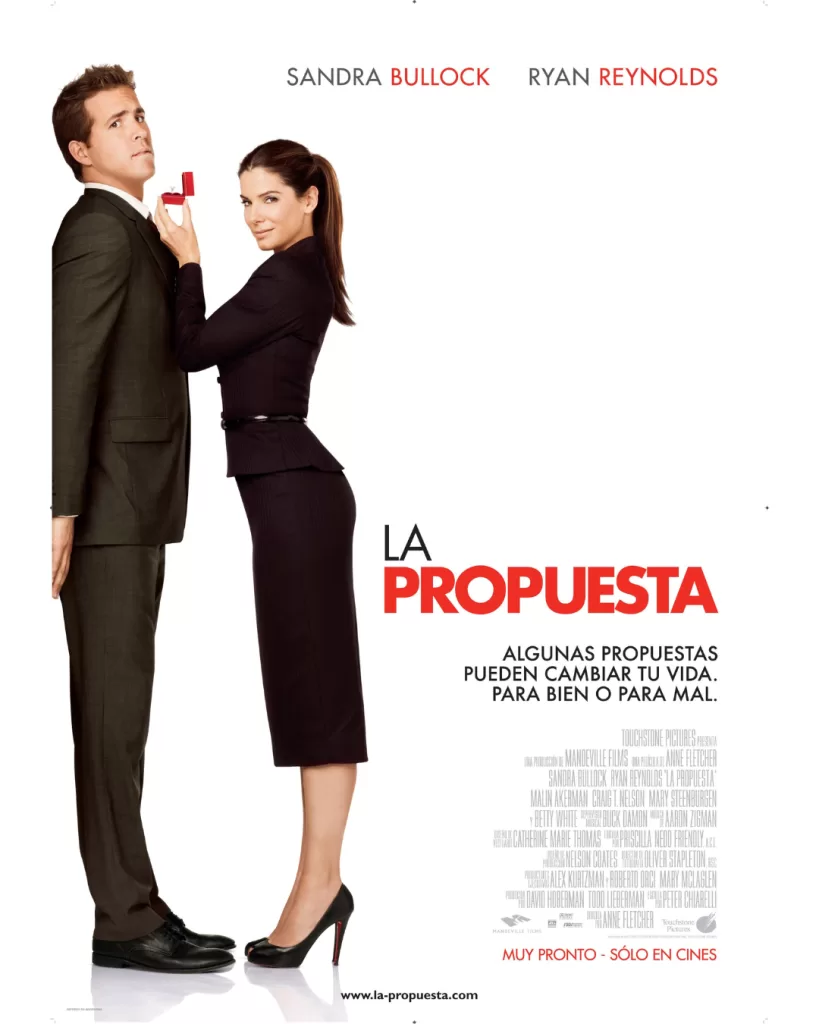 Aunque fue estrenada hace 16 años atrás, esta cinta cinematográfica nos sigue haciendo reír. Sandra Bullock interpreta a una poderosa y malvada editora en una importante revista, pero su vida se da vuelta cuando le llega la amenaza de ser deportada fuera de Estados Unidos, a su país de origen: Canadá.