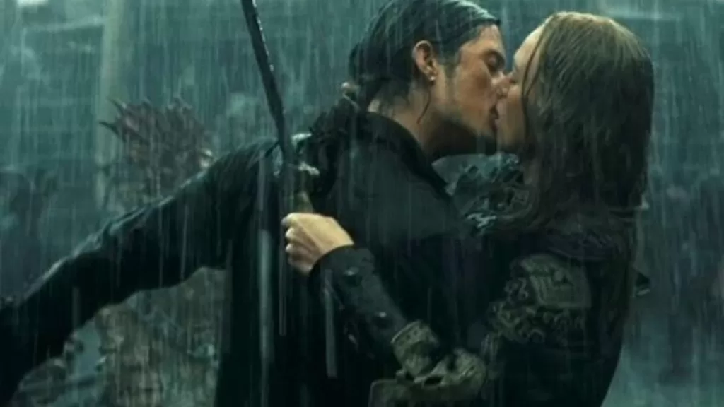No podíamos no cerrar con una de las escenas más hermosas del mundo: la que nos dio Piratas del Caribe, con el excitante beso entre Elizabeth y Will Turner entre las gotas que caían del cielo.