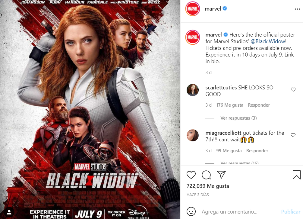 Cabe destacar que "Black Widow", se va a estrenar el próximo 9 de julio a través de Disney Plus por el medio Premium Access.
