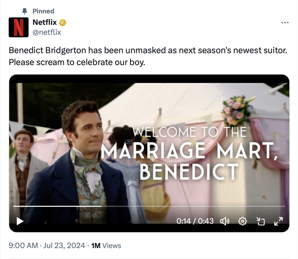 Benedict Bridgerton, el segundo en la línea de los hijos, será quién viva el romance esta temporada. La compañía reveló por medio de un video en X, que será él quien ingresará al mercado matrimonial esta vez y quien vivirá un importante suceso en un baile de máscaras.