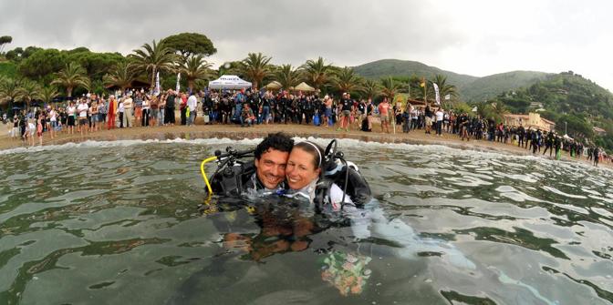Francesca Colombi y Giampiero Giannocaro tienen el récord del matrimonio más grande, debajo del agua: se celebró el 12 de junio del 2010, y participaron 241 buzos. ¿Qué tal?