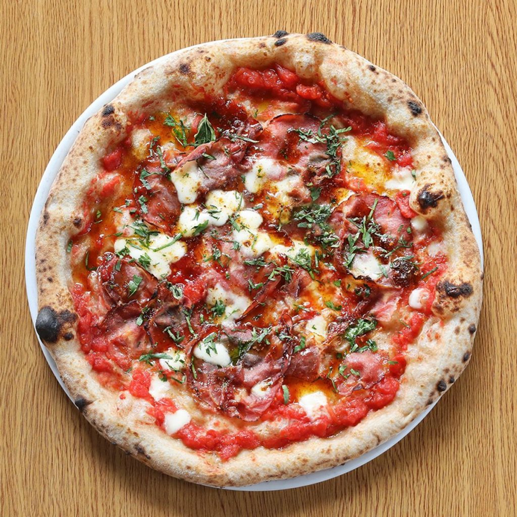 Entre sus exquisiteces, te recomendamos la Coppa ($12.200). Fermentada con masa madre con salsa de tomate, mozzarella fresca fior de latte, coppa ahumada, miel al merken. albahaca y oliva. Ideal para celebrar el Día de la Pizza.