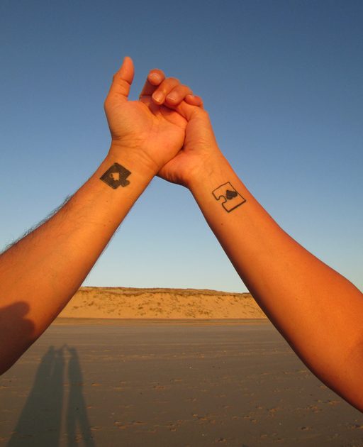 Pueden tatuarse un diseño que, al juntarse, se complemente. Entre ellos, un corazón a la mitad, piezas de un rompecabezas, una llave y cerradura o la luna y el sol, entre otras ideas.