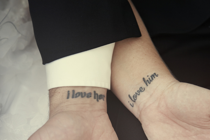 Desde promesas de amor hasta frases que solo ustedes comprendan. Puede ser la misma frase o textos diferentes los que se tatúen.
