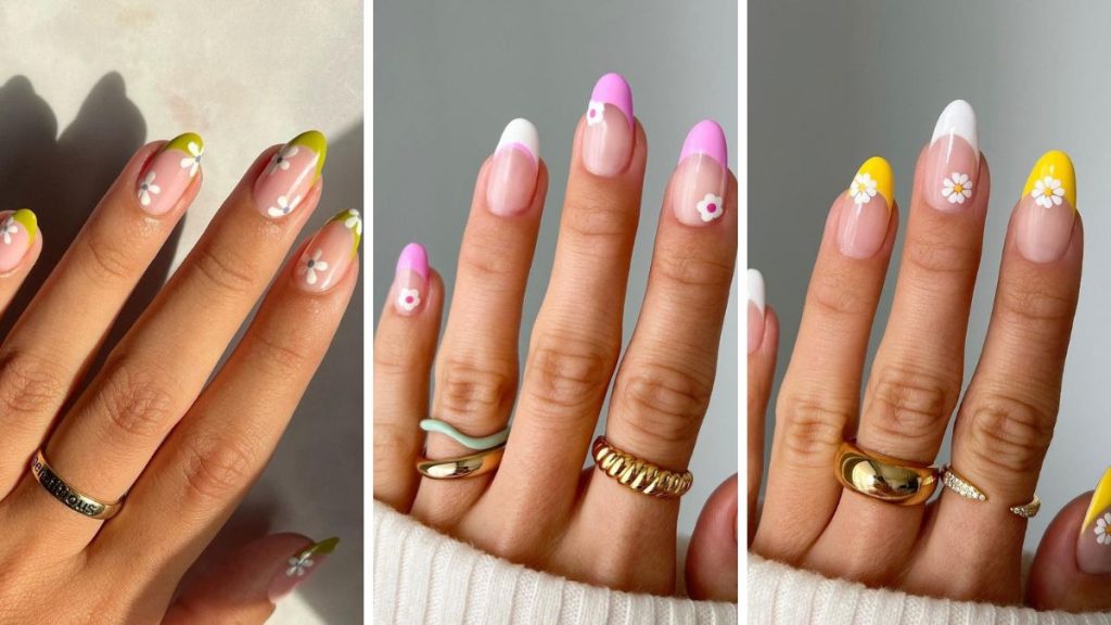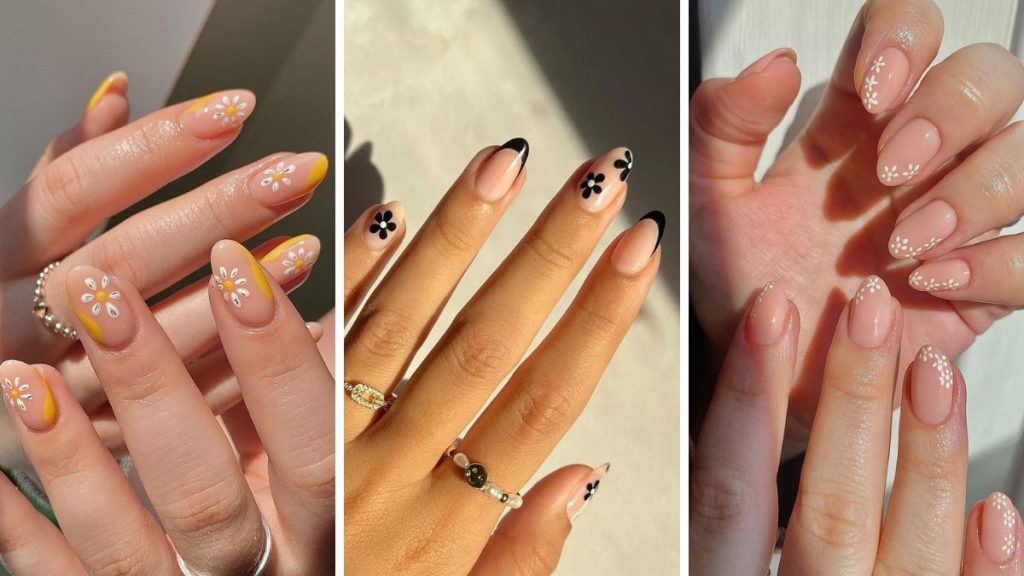 Esta es una buena opción si quieres hacerte las uñas en casa. Es tan fácil como tomar un punzón o el final de un pincel de pintura acrílica para hacer círculos que terminarán formando flores de colores que le darán ese toque femenino y tierno a tus manos.