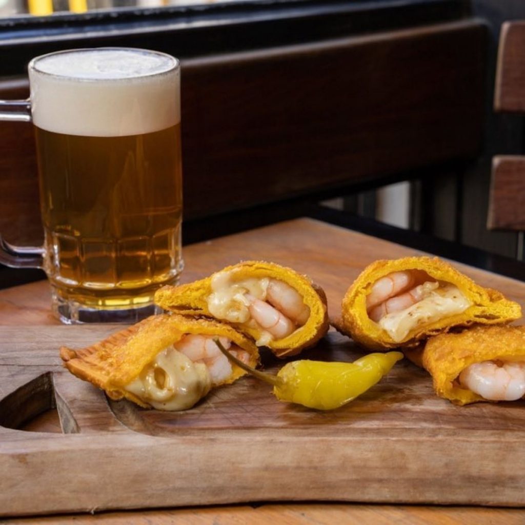 Acompaña tu birra con un clásico churrasco italiano, con una empanada de camarón queso, un sándwich de arrollado o una papas choras.