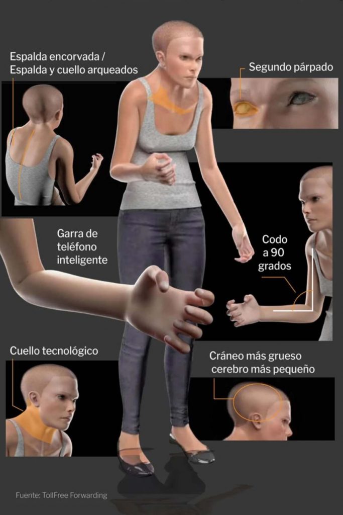 Dada la postura que se utiliza para mirar el celular cuando estamos parados o sentados, nuestra especie dejará de ser erguido y tendrá la espalda más encorvada.