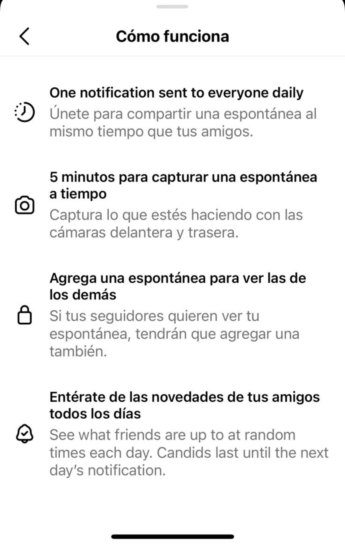 ¿De qué se trata? De una fotografía espontánea que puedes compartir con tus seguidores, en donde debes mostrarte lo más real posible. El tema es que es la misma función que ofrece su competencia.