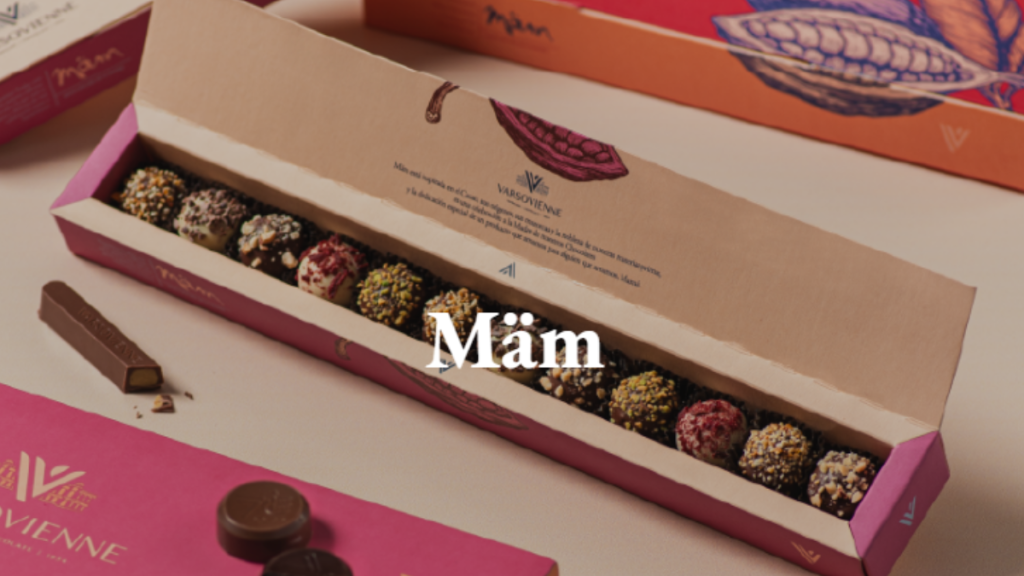 Mäm, la línea de Varsovienne, está inspirada en el Cacao, sus orígenes, sus mazorcas y la nobleza de nuestras materias primas. Y es una celebración a la Madre de los Chocolates y la dedicación especial de un producto que amamos para alguien que amamos.