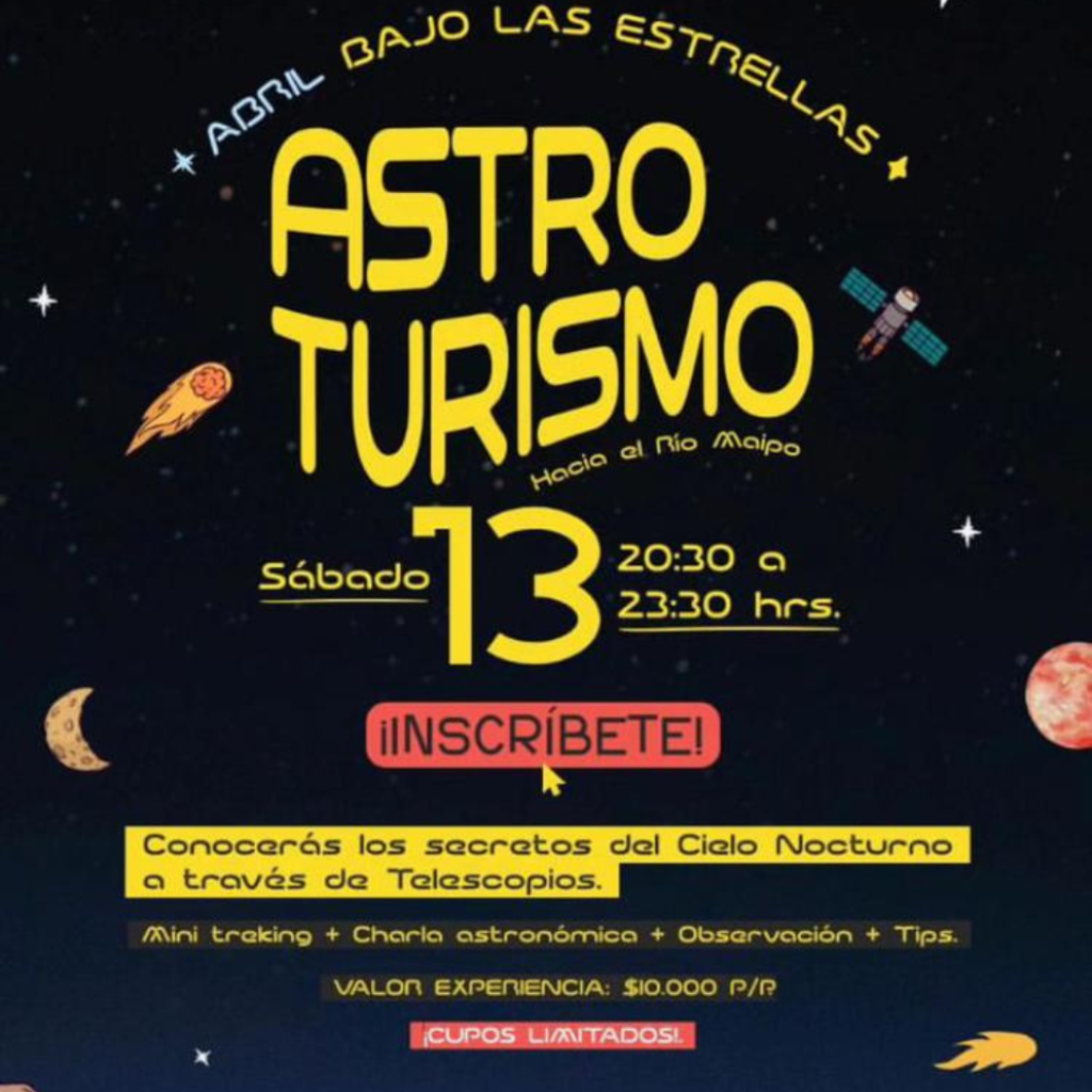 Este 13 de abril podrás ser parte de un imperdible panorama donde disfrutarás del Astroturismo en la comuna de Isla de Maipo, una experiencia única para observar el cielo nocturno a través de telescopios.