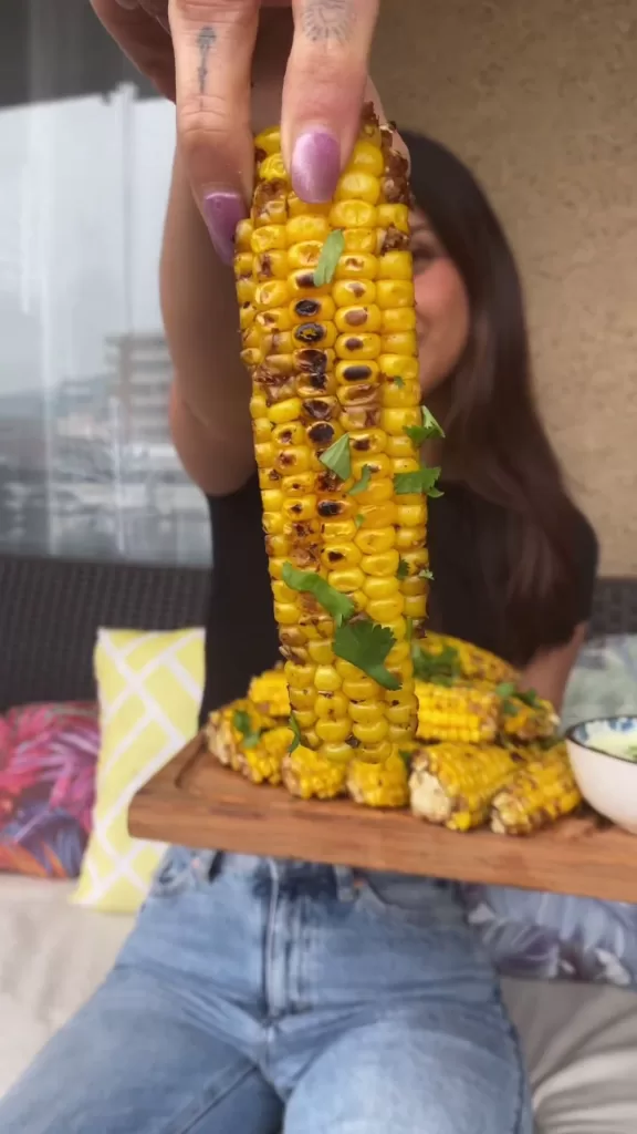 Finalmente retiramos el choclo del horno, agregamos la salsa spicy y cilantro por encima y disfrutamos