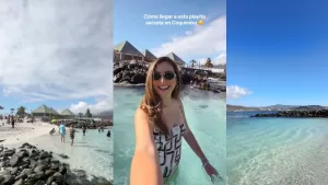 Según lo comentado por Benjamín en el video, la playa queda entremedio de unos acantilados y roqueríos, “lo que hace que haya muy poquita gente”.