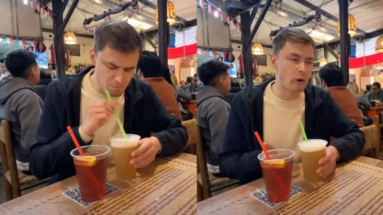 Finalmente, Andrei Sokolov llegó a La Piojera y pidió su último terremoto junto con un vaso de chicha. Sobre esta última comentó que parecía jugo en comparación al otro trago.