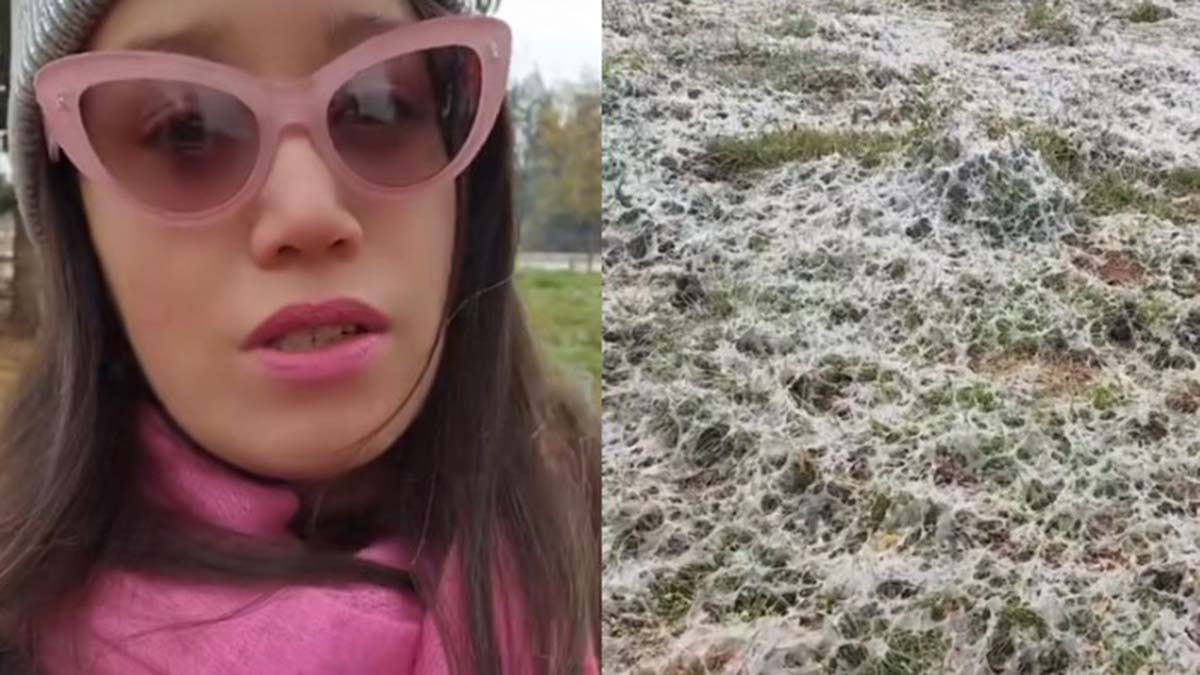 En ese sentido, la internauta reveló que "me da mucho miedo", al tiempo que mostraba un campo lleno de telarañas. "Son millones de arañas que están formando muchas telas de araña (...) es una plaga", advirtió.