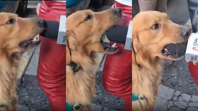 Un perrito de Carabineros protagonizó un tierno momento al morder el micrófono de una periodista de Chilevisión.