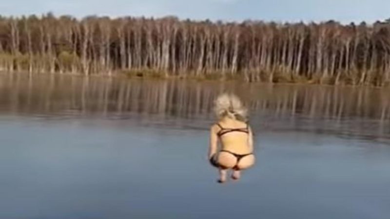 Cada cierto tiempo hay videos hilarantes o muy dolorosos que se vuelven virales en internet, esto último es el caso del registro de una joven rusa que decidió saltar a un lago congelado en ropa interior.