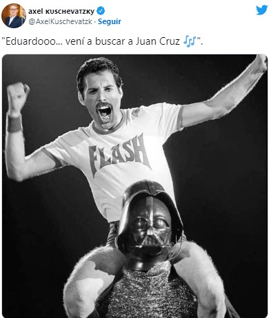 Rápidamente, armaron un jingle que terminó siendo coreado por las personas que se encontraban en el lugar. "Eduardo... vení a buscar a Juan Cruz", se oye en el estribillo entonado por músicos y transeúntes: