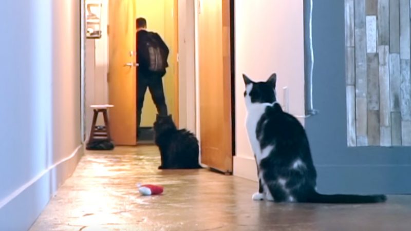 Y es que en cuanto el hombre cierra la puerta de su casa, sus mascotas comienzan a lamentar su ausencia sin dejar de maullar.