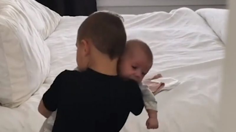 “Oyó a su hermana pequeña llorar y se apresuró a verla”, escribió la madre de los niños, quien compartió el video en donde se ve al pequeño acunando a la bebé para que se calme.