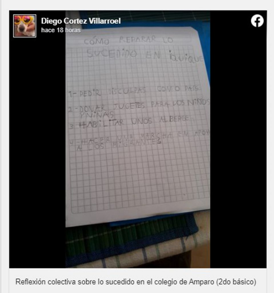 Como respuesta a los hechos violentos del sábado en la localidad norteña, una niña de ocho años realizó una propuesta y la tituló "Cómo reparar lo sucedido en Iquique".