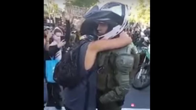 Video de manifestantes abrazando a Carabineros se hace viral en redes sociales