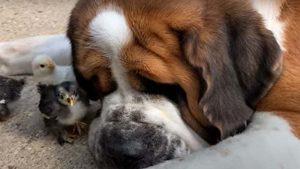 El adorable perro San Bernardo que protagoniza este video viral que circula en YouTube, ayuda a cuidar una variedad de animales en la granja de su dueño: