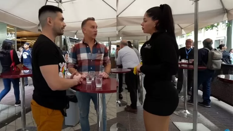 Sin embargo, cuando pasaron a la mesa, se acercó una de las mujeres que trabaja en el local para preguntarles si quieren sus bebestibles con azúcar o endulzante. En eso, el YouTuber se mostró bien a gusto con la atención brindada.